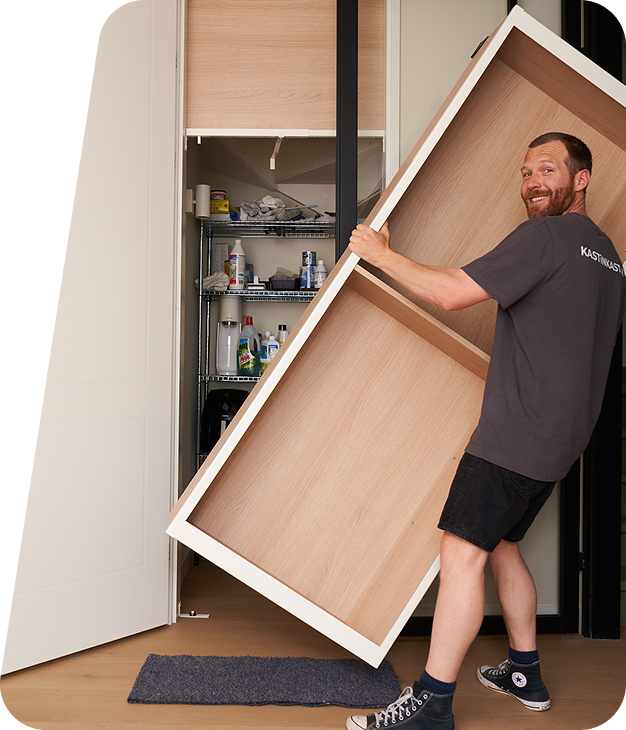 De eerste werkplaats bij zijn ouders was voor de start van kastinkast.nl ideaal, maar al snel begonnen de kasten zich letterlijk op te stapelen in de garage… en de woonkamer. Het werd tijd om het nest te verlaten en uit te vliegen naar de eerste echte werkplaats. Die vond hij in Diemen, een relatief kleine locatie maar goed genoeg voor kastinkast.nl om te groeien naar iets wat je een bedrijf kunt noemen.
